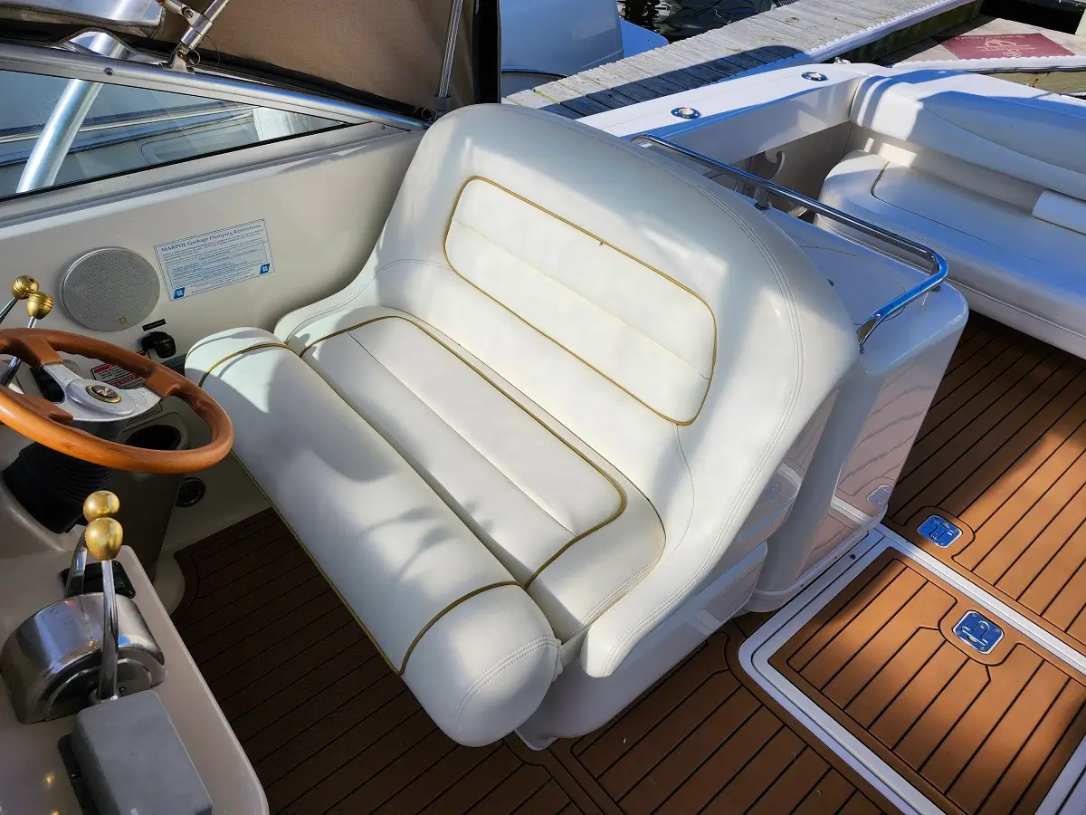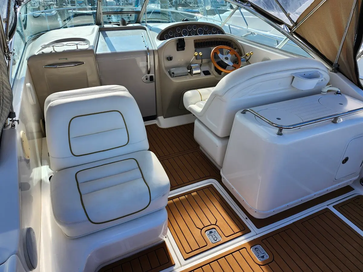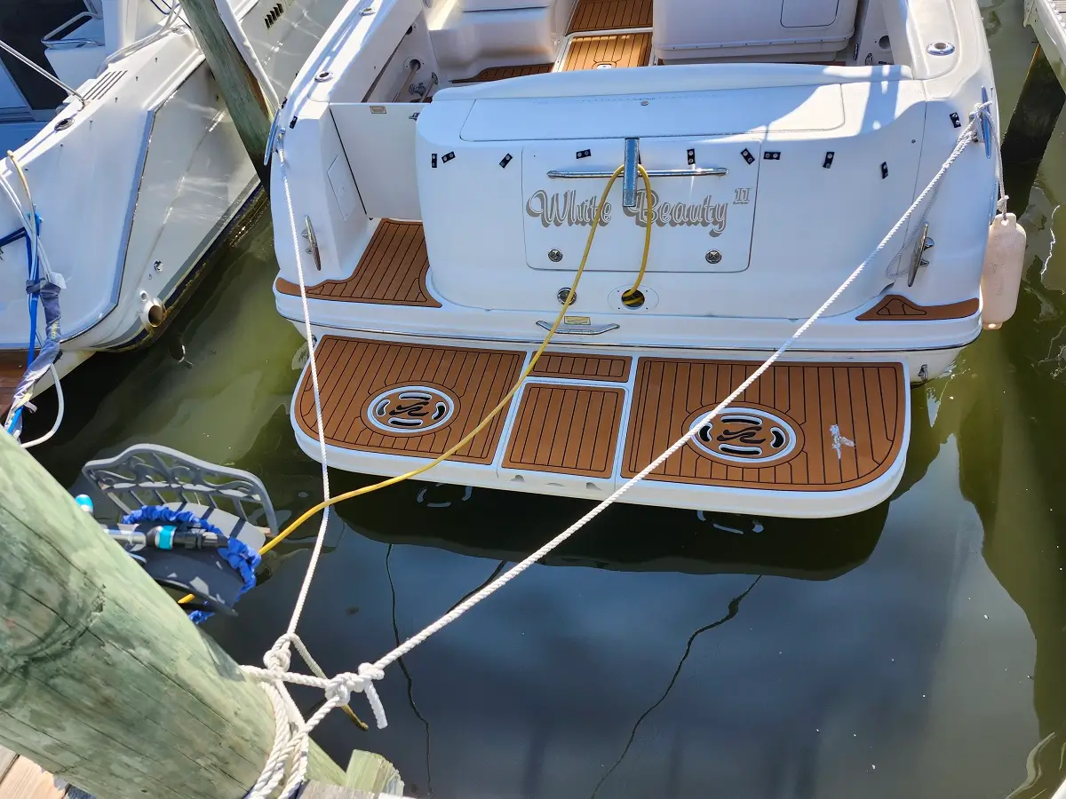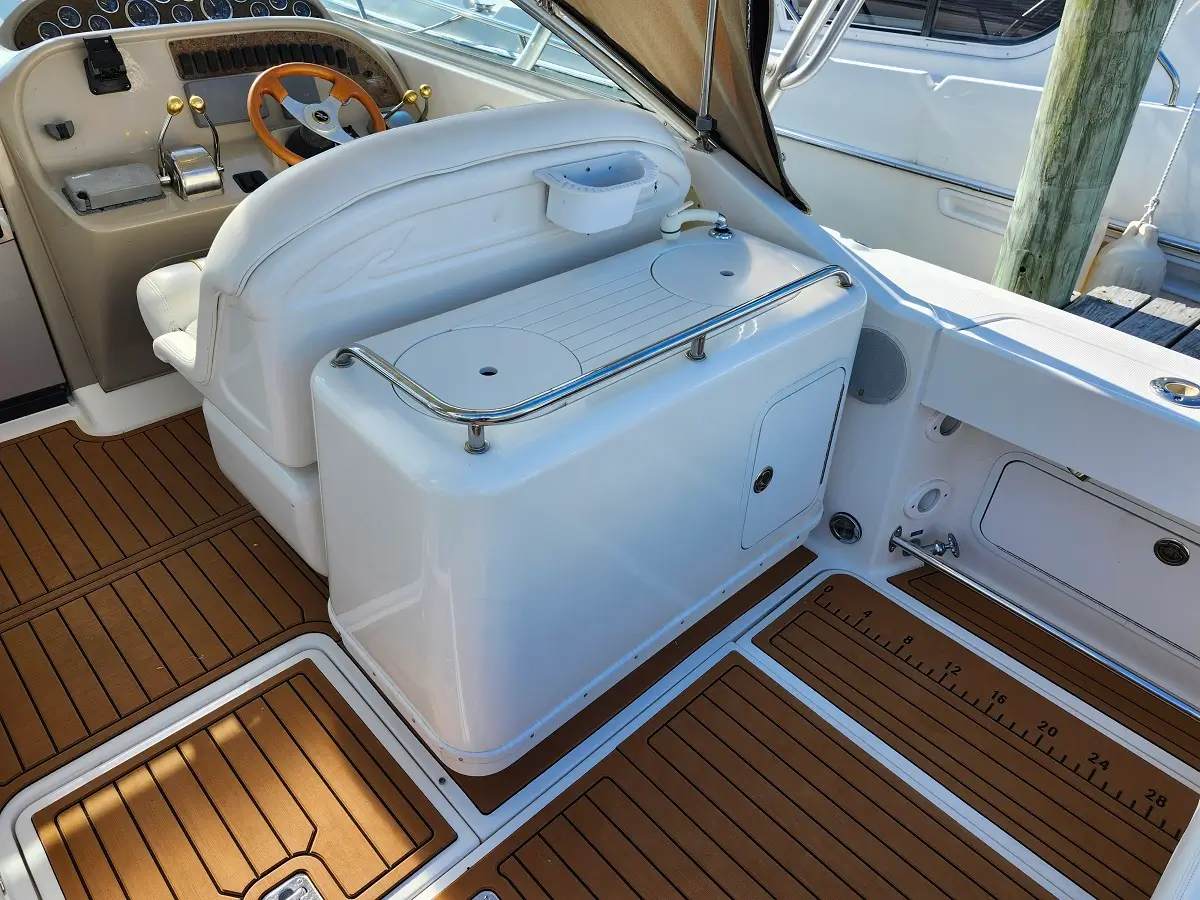 A perfect blend of cruising and fishing. The 2001 Sea Ray Amberjack has most of the amenities of a Sundancer while providing some of the accessories needed for a successful day of fishing. This particular Amberjack has been updated with decking in the cockpit and swim platform. It has a generator, windlass, ac/heat, galley, private head, two sleeping areas and much more. It’s powered by twin Mercruiser 5.7 EFIs with only 365 hours. Start planning your family and fishing adventures.