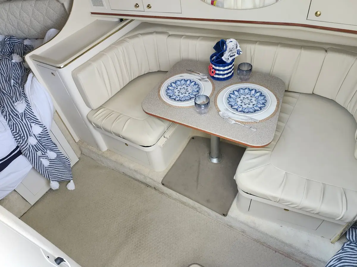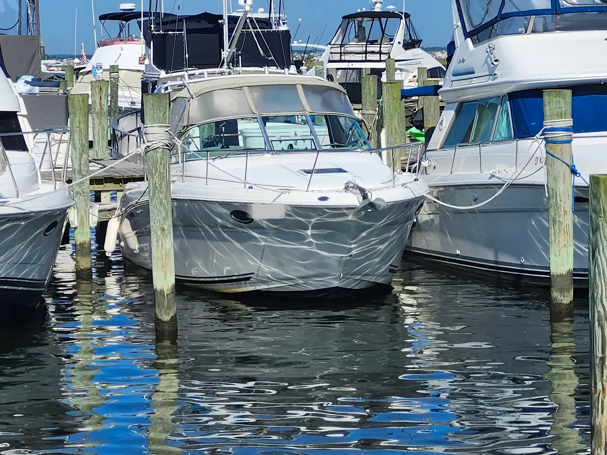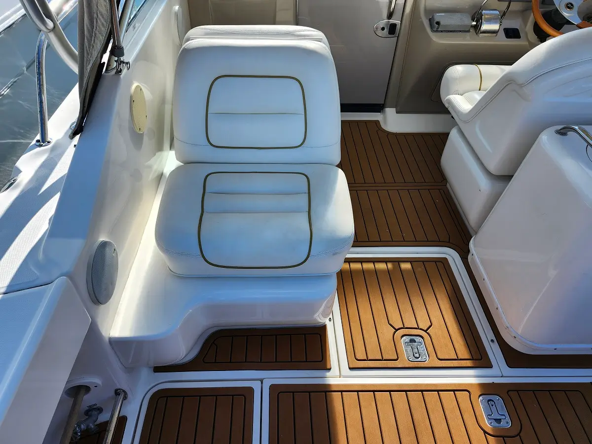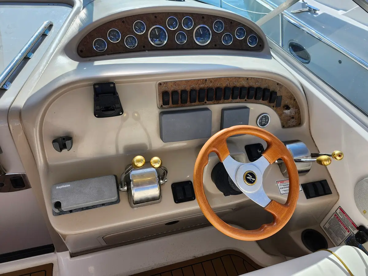 A perfect blend of cruising and fishing. The 2001 Sea Ray Amberjack has most of the amenities of a Sundancer while providing some of the accessories needed for a successful day of fishing. This particular Amberjack has been updated with decking in the cockpit and swim platform. It has a generator, windlass, ac/heat, galley, private head, two sleeping areas and much more. It’s powered by twin Mercruiser 5.7 EFIs with only 365 hours. Start planning your family and fishing adventures.