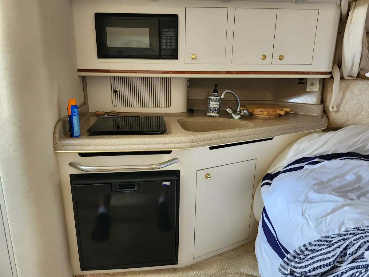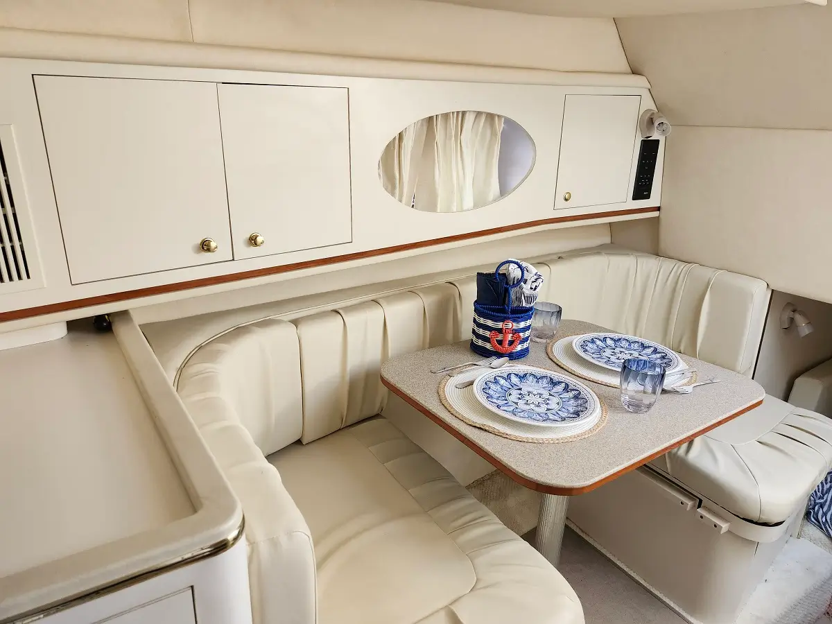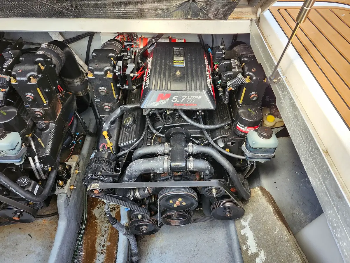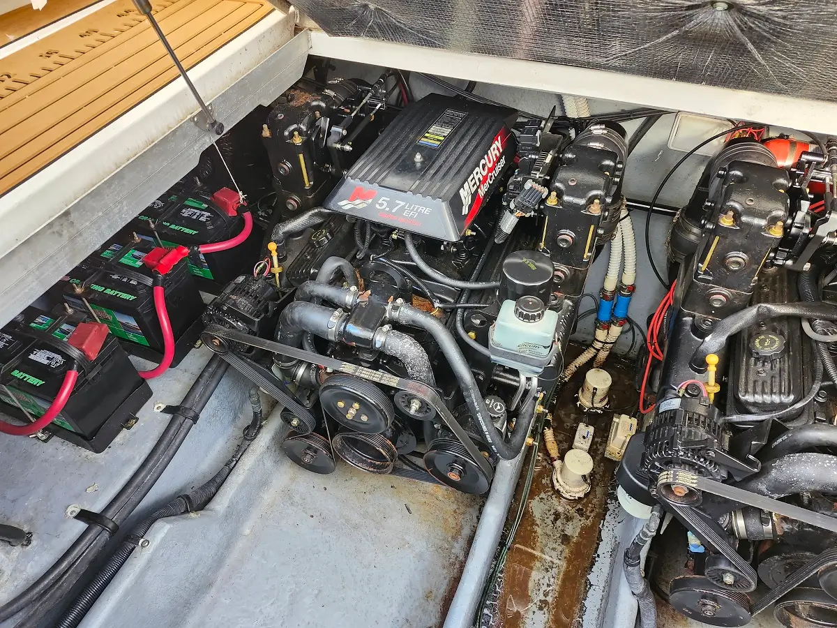 A perfect blend of cruising and fishing. The 2001 Sea Ray Amberjack has most of the amenities of a Sundancer while providing some of the accessories needed for a successful day of fishing. This particular Amberjack has been updated with decking in the cockpit and swim platform. It has a generator, windlass, ac/heat, galley, private head, two sleeping areas and much more. It’s powered by twin Mercruiser 5.7 EFIs with only 365 hours. Start planning your family and fishing adventures.