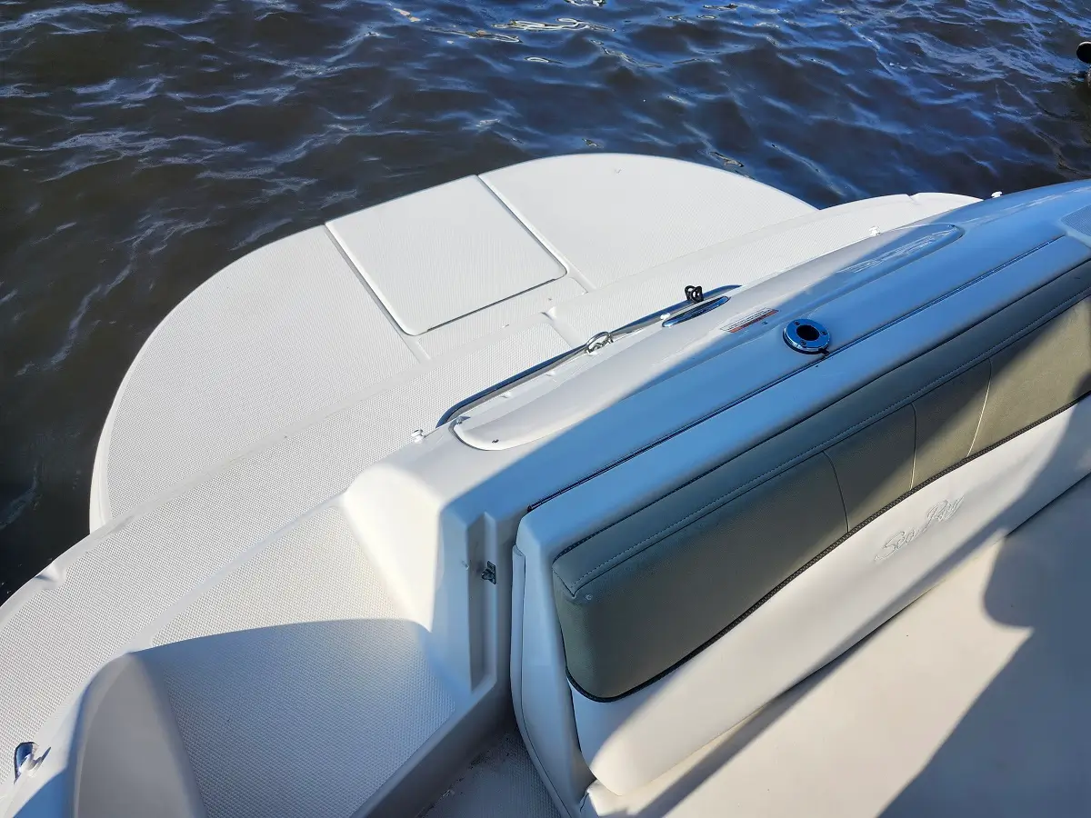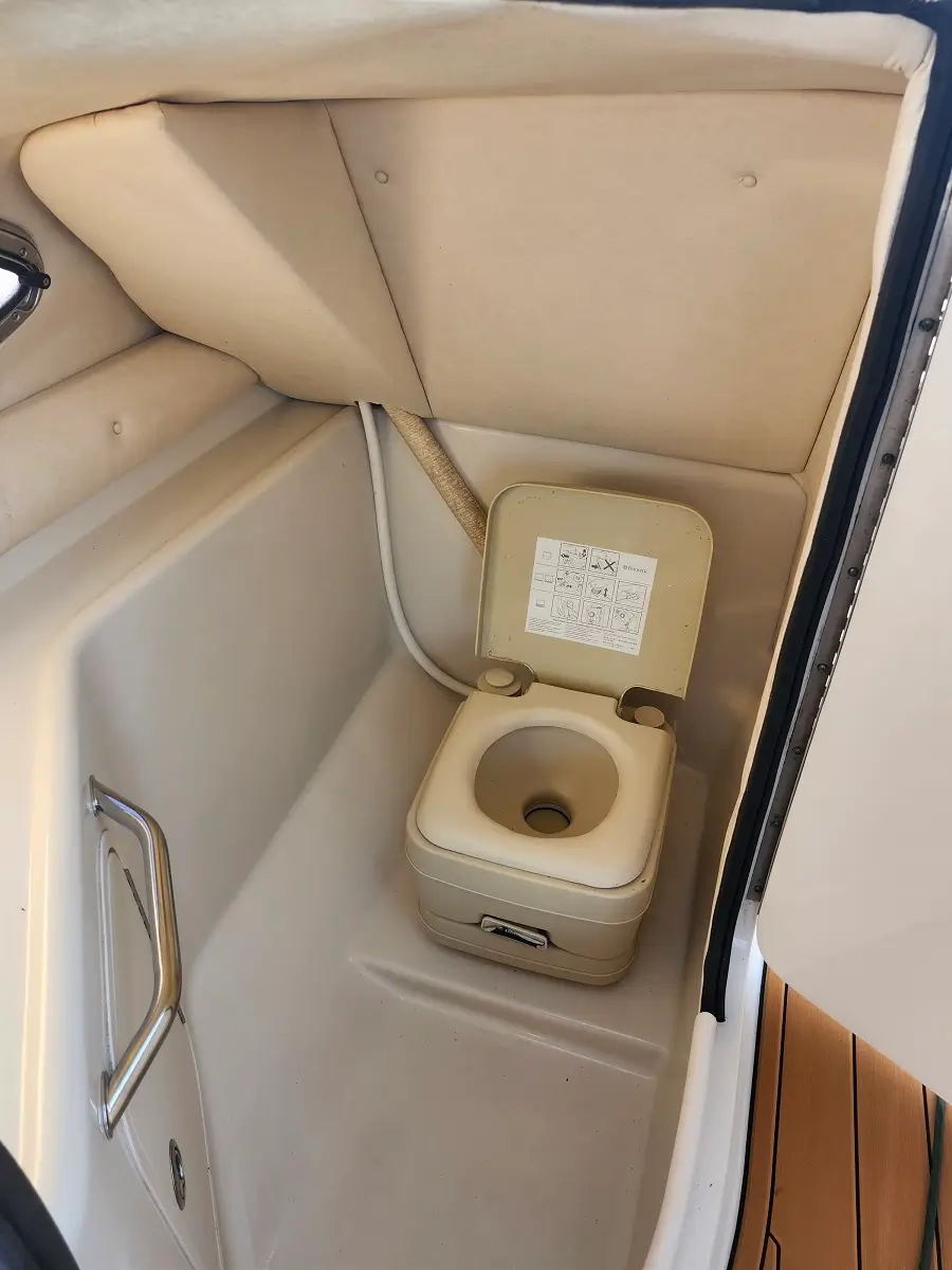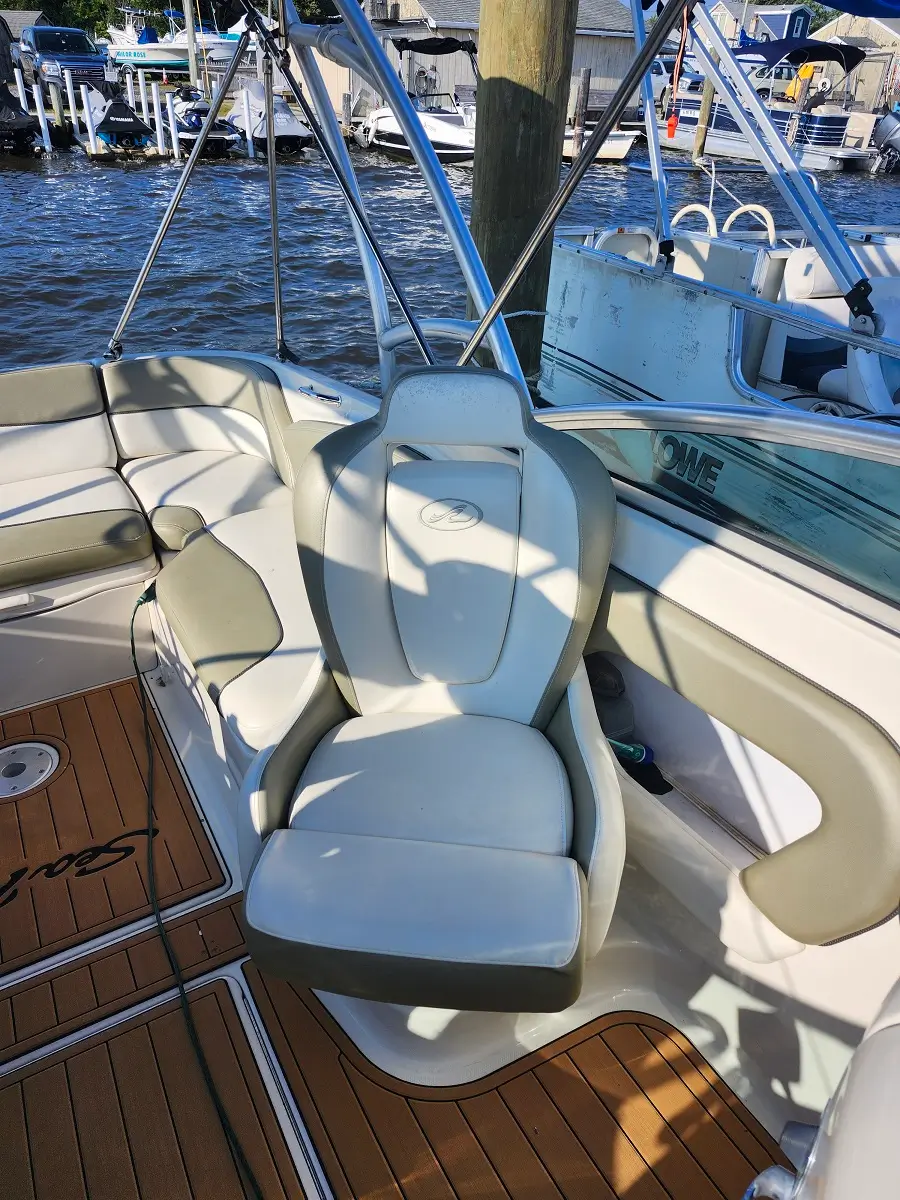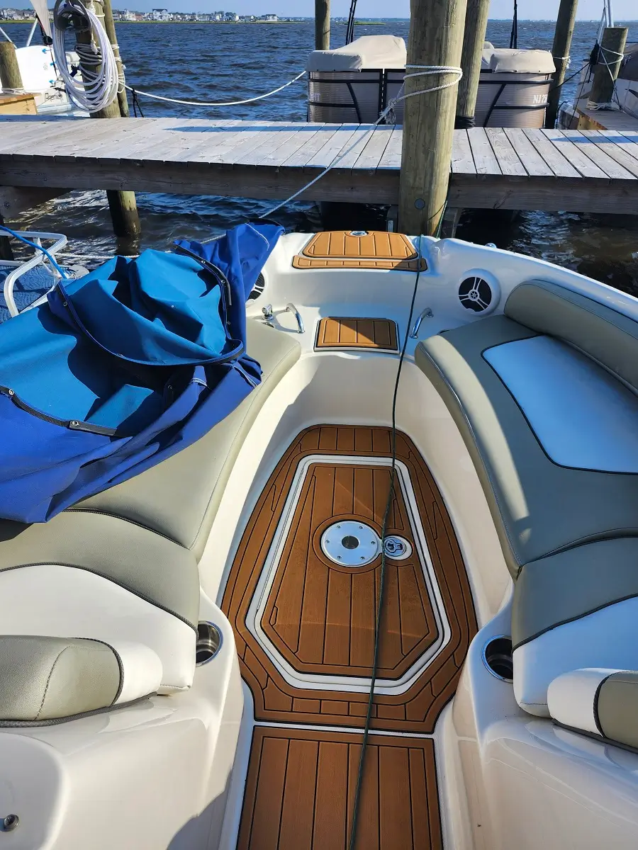 The owner is moving, and now this is being offered to a new owner. The 2007 Sea Ray 240 Sundeck has generous seating and a head built into the side console. It’s powered by a Mercruiser Mag 350 MPI with 300 horsepower. There are only 376 hours on the engine, and the manifolds, risers, and oil pan were replaced 2 years ago. For electronics, it has a stereo system and GPS. Large speakers are mounted on the optional aluminum arch. To make the boat look nicer and add comfort, the owner had decking added to the boat. The boat also comes with a bimini top and cockpit covers.
