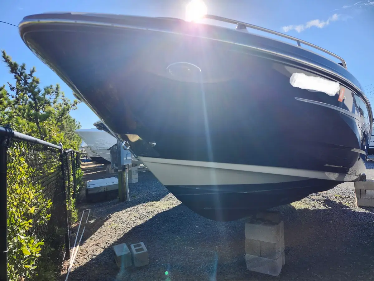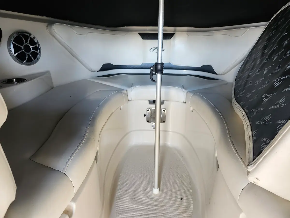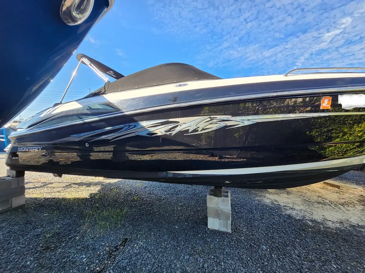 The 2014 Monterey 264 FSX is a sporty bowrider that will turn heads as you go by, thanks to its sleek black hull. There is plenty of seating, and storage abounds. There is a removable table and a filler cushion for the bow seating so that you can stretch out in the sun. A head is provided in the side console. A Mercruiser 350 Mag powers it with only 185 hours, and the Bravo 3 outdrive is brand new. There is a nice stereo for entertainment, a bimini top, and a full cockpit cover to protect your boat. Cruise along the Jersey Shore in this bowrider next summer!