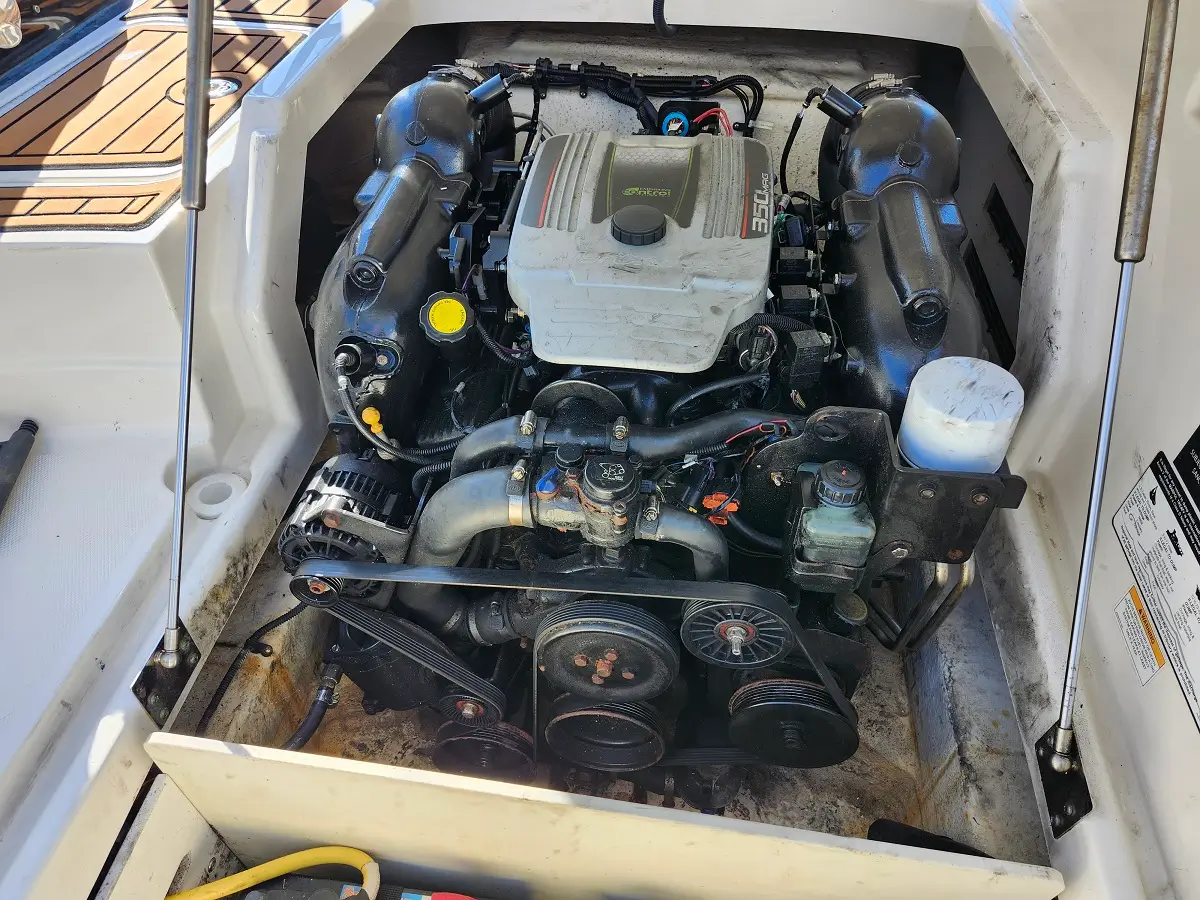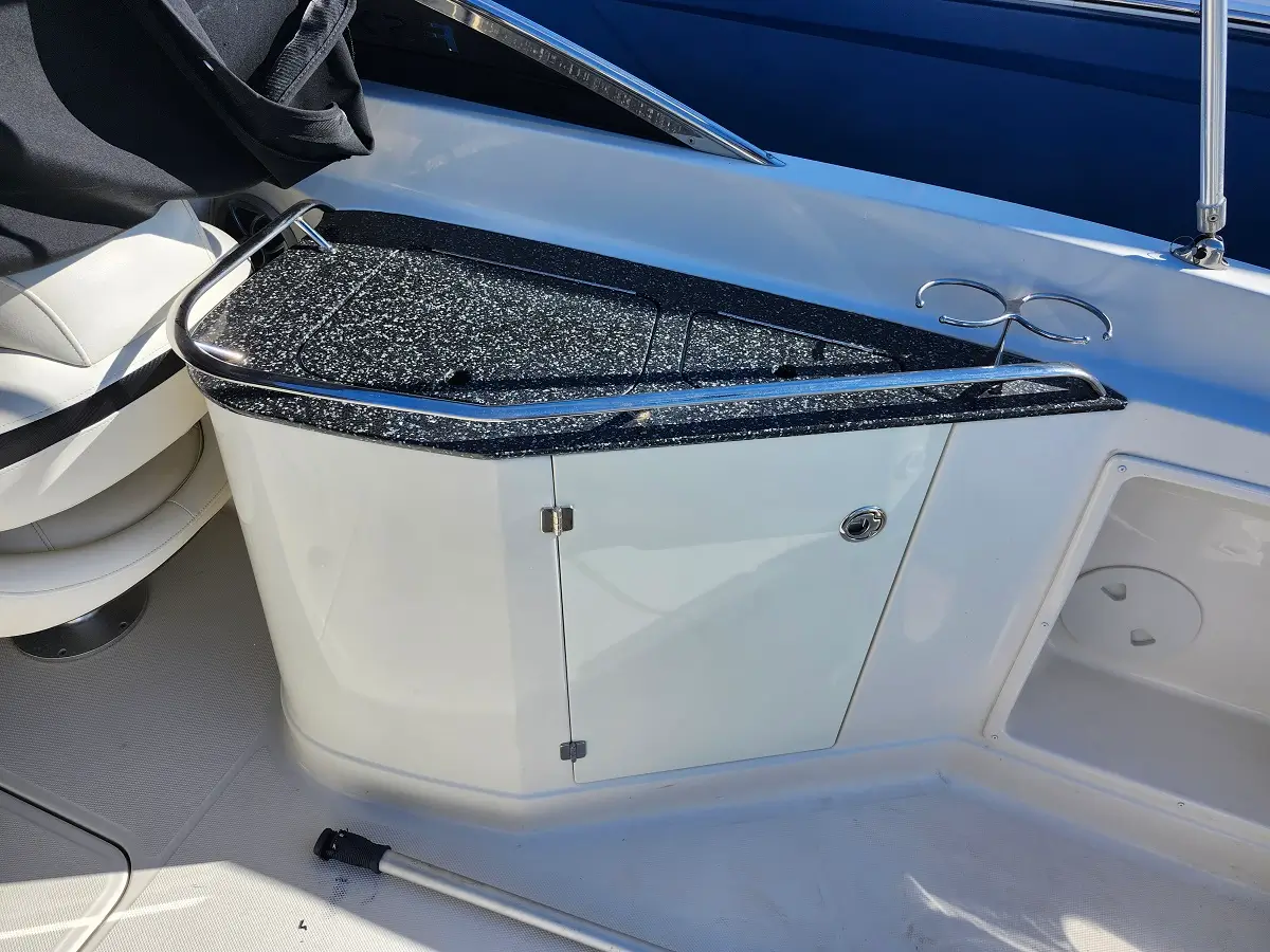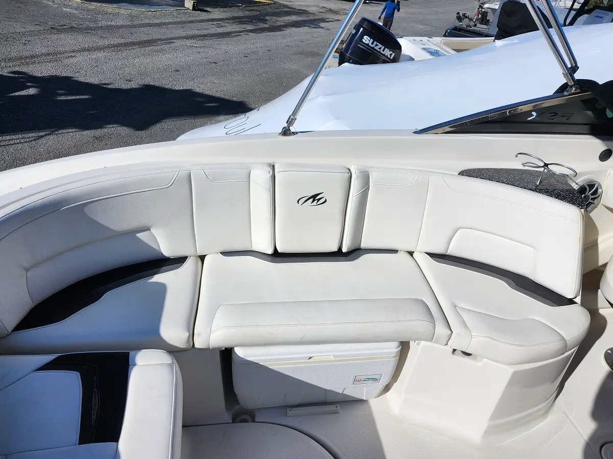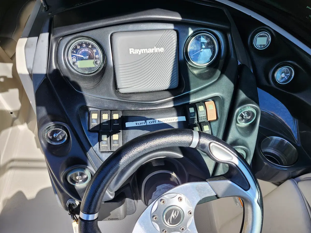 The 2014 Monterey 264 FSX is a sporty bowrider that will turn heads as you go by, thanks to its sleek black hull. There is plenty of seating, and storage abounds. There is a removable table and a filler cushion for the bow seating so that you can stretch out in the sun. A head is provided in the side console. A Mercruiser 350 Mag powers it with only 185 hours, and the Bravo 3 outdrive is brand new. There is a nice stereo for entertainment, a bimini top, and a full cockpit cover to protect your boat. Cruise along the Jersey Shore in this bowrider next summer!