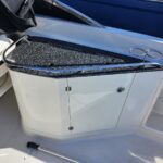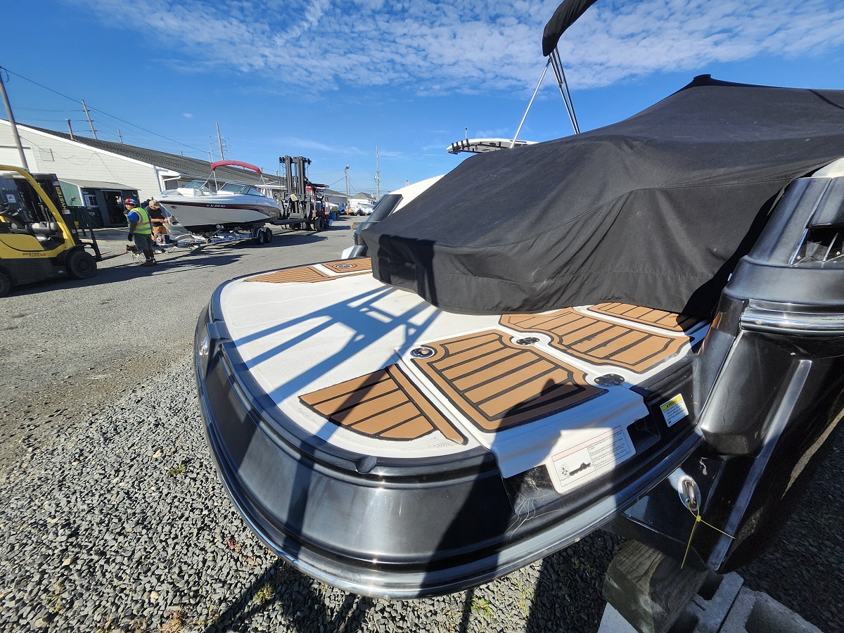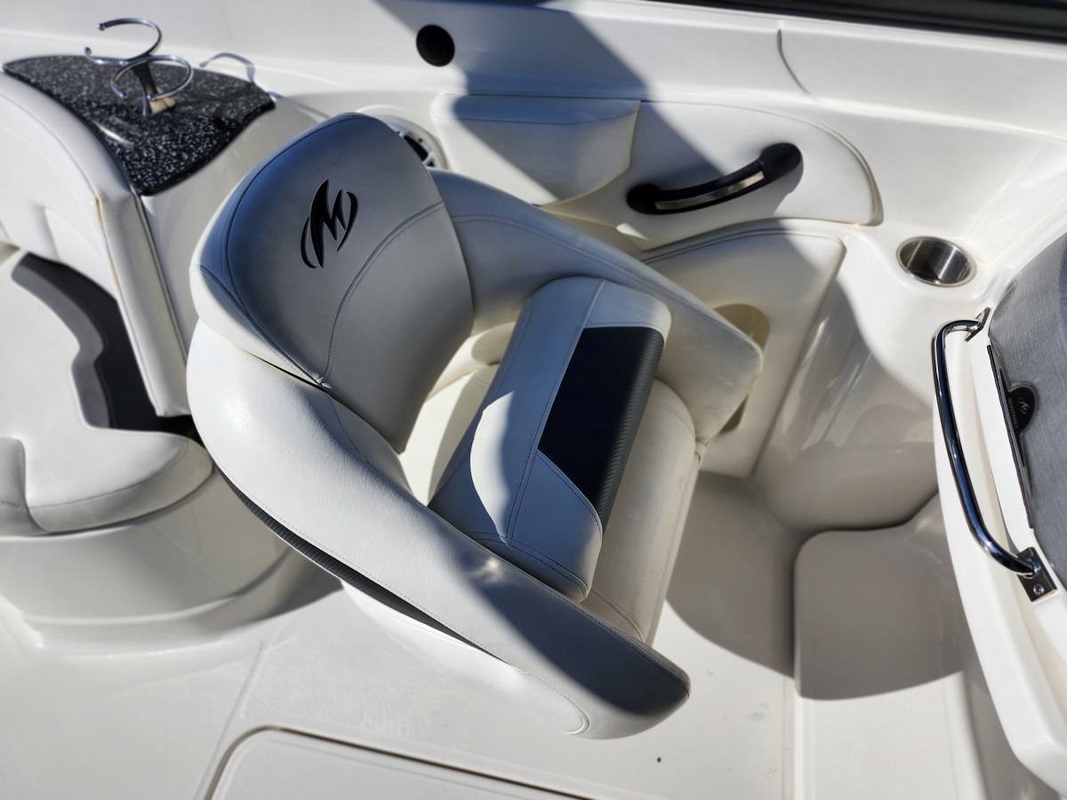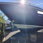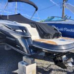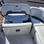 A sporty bowrider that will turn heads when you go by with its sleek black hull. There is plenty of seating and storage abounds. There is a removable table and a filler cushion for the bow seating if you want to stretch out in the sun. A head is provided in the side console. It’s powered by a Mercruiser 350 Mag with only 185 hours and the Bravo 3 outdrive is brand new. There is a nice stereo for entertainment, a bimini top and a full cockpit cover to protect your boat.