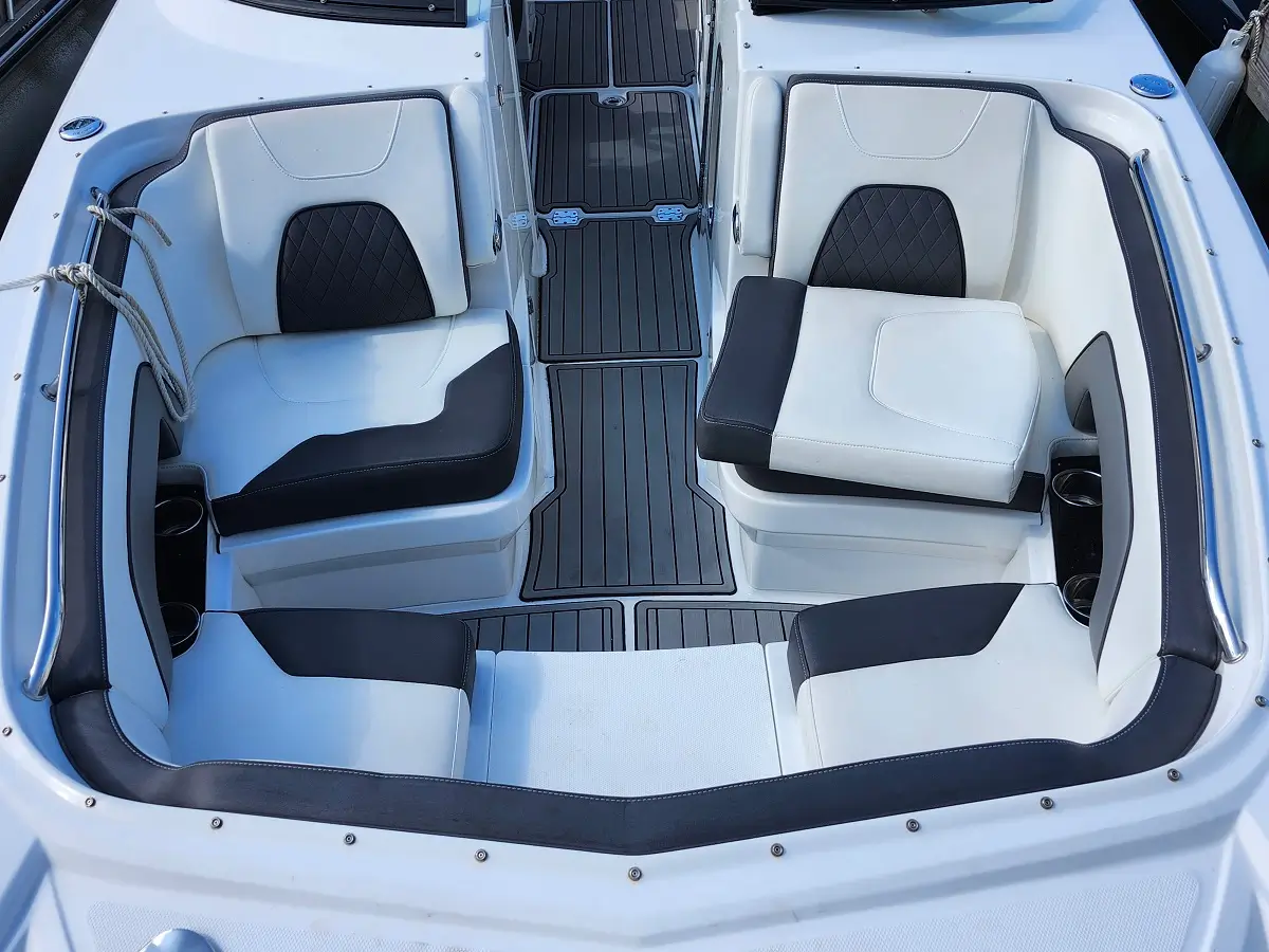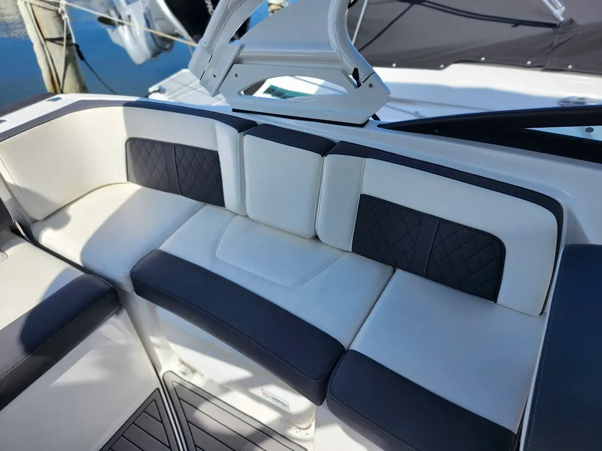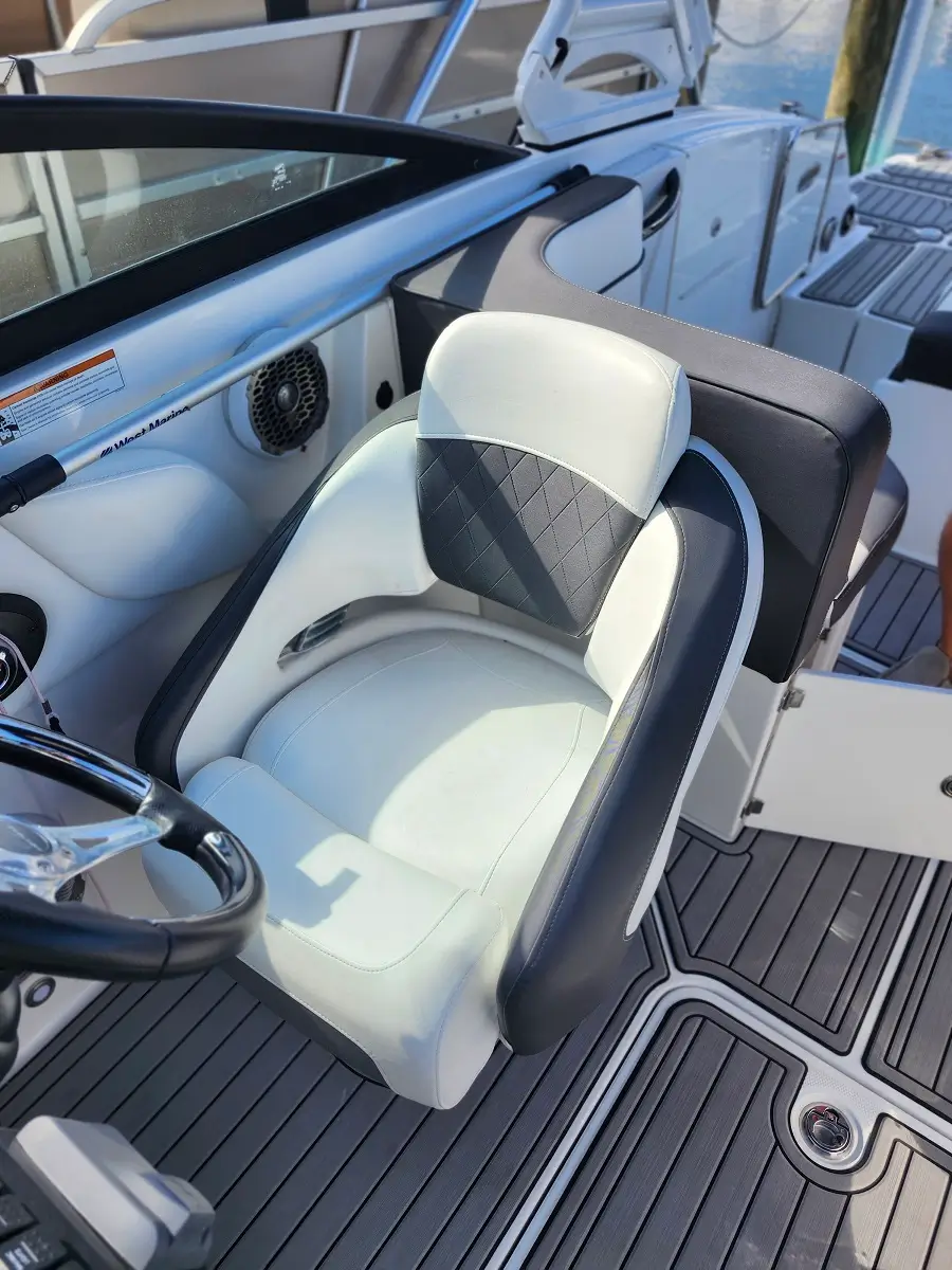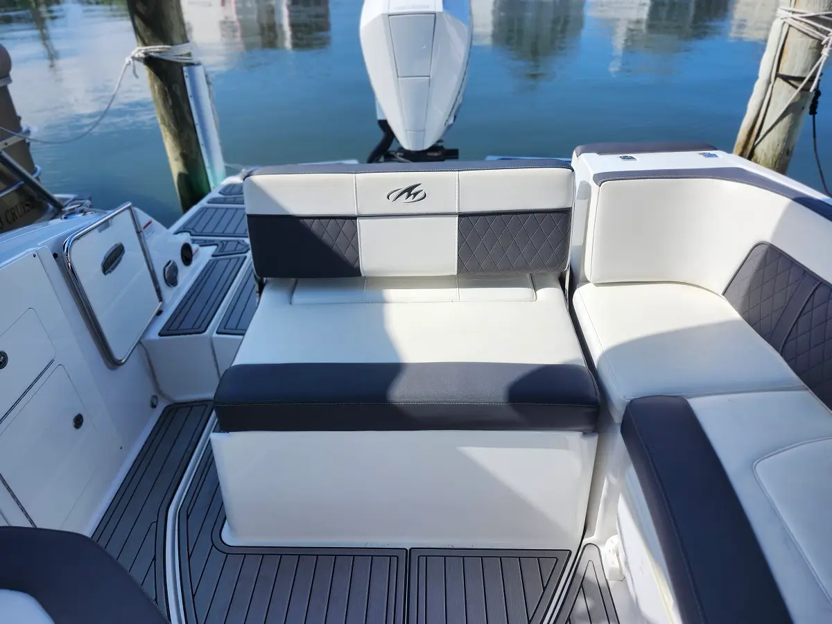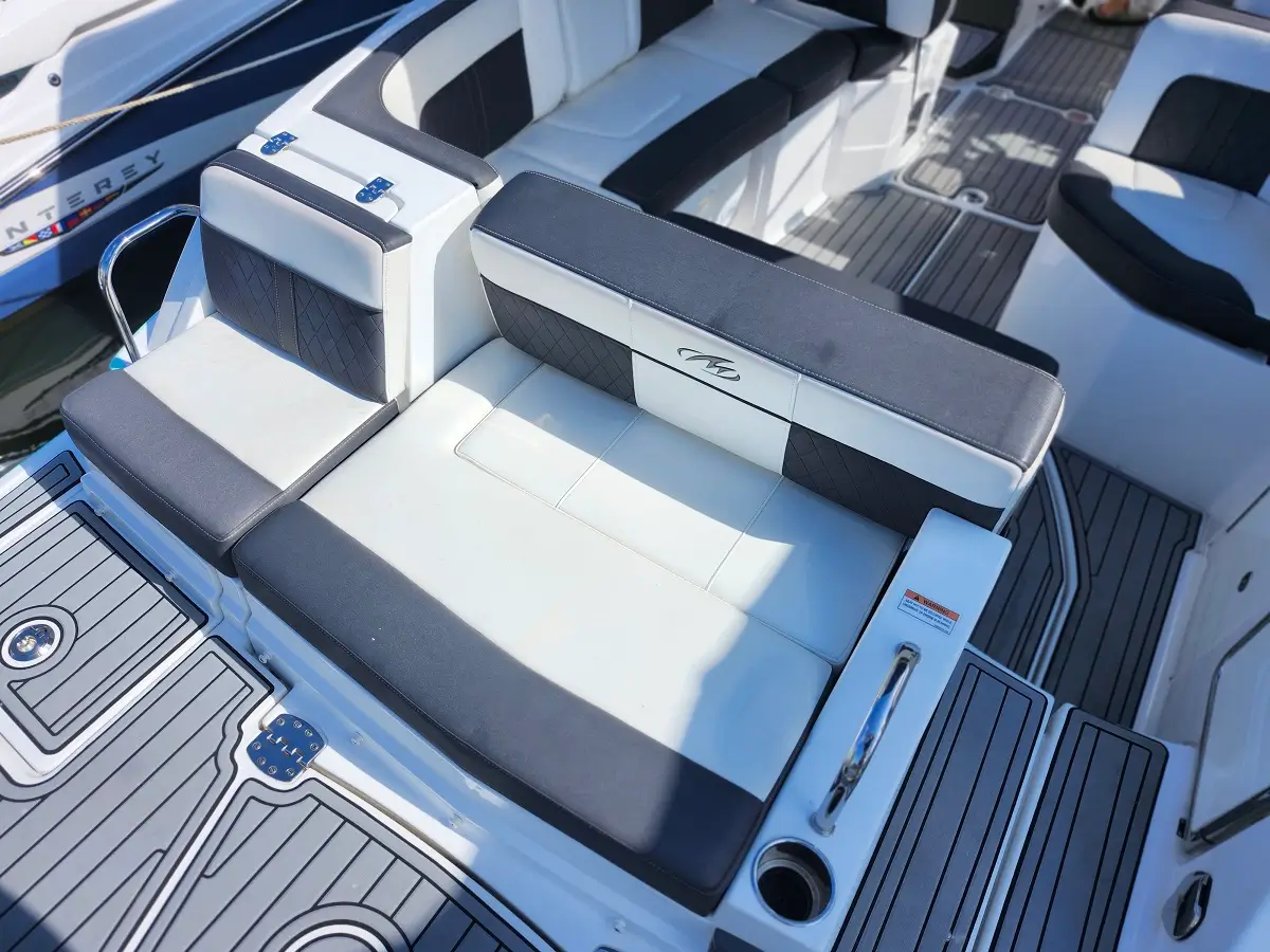 An excellent mid-season find, the 2020 Monterey M65 is a well-maintained, versatile bowrider that is just what the doctor ordered for your summer fun. It has adjustable seating for up to 12 people. The beautiful decking keeps you sure-footed in wet conditions and comfortable in the summer heat. There is a head in the side console, plenty of walking room, a large swim platform for fun in and on the water, a stereo, and touch-screen electronics. It’s propelled by a white Mercury 300-hp outboard. The boat looks like new, and it’s thousands of dollars less. Now offered at an end-of-the-season price.