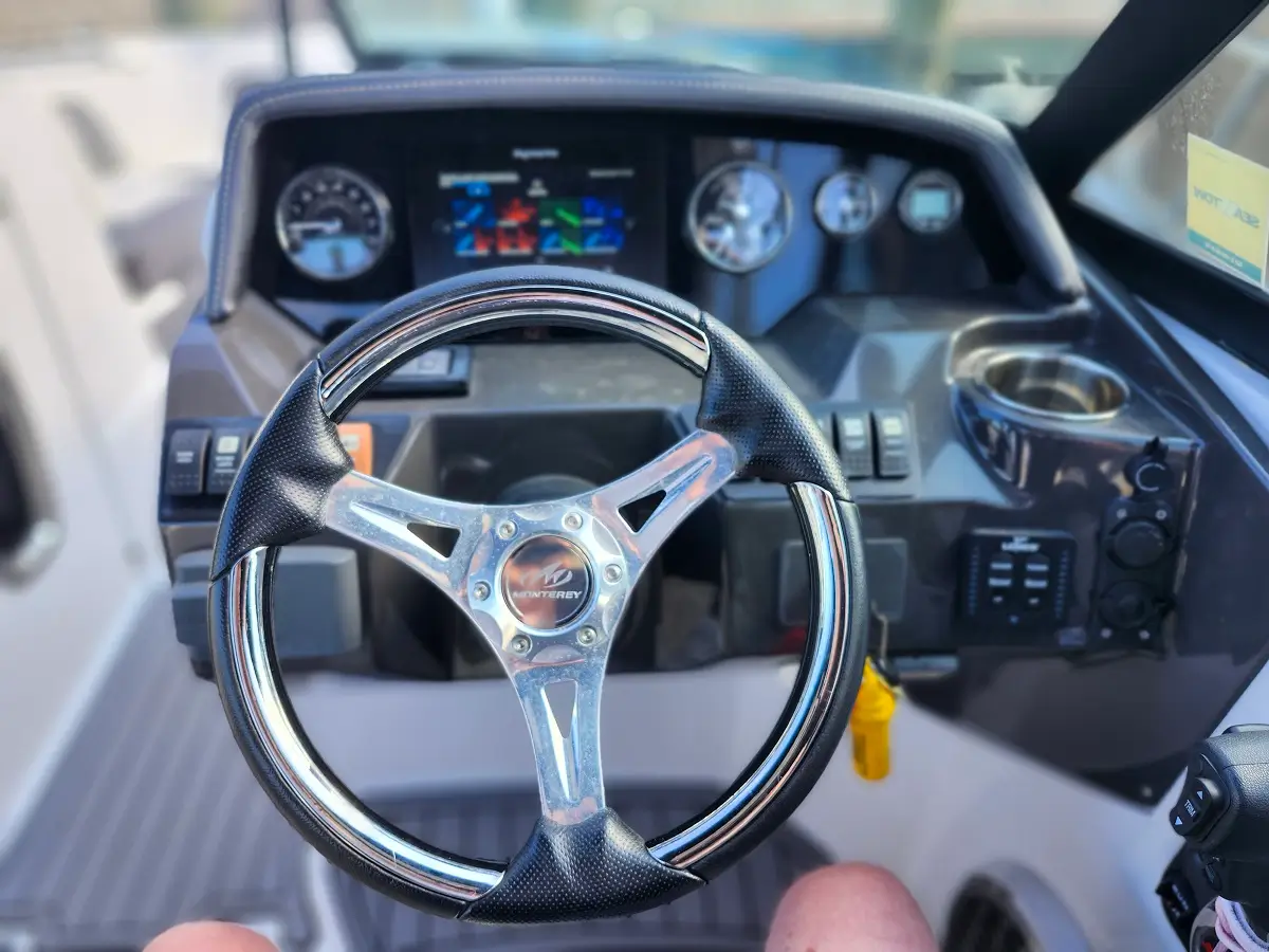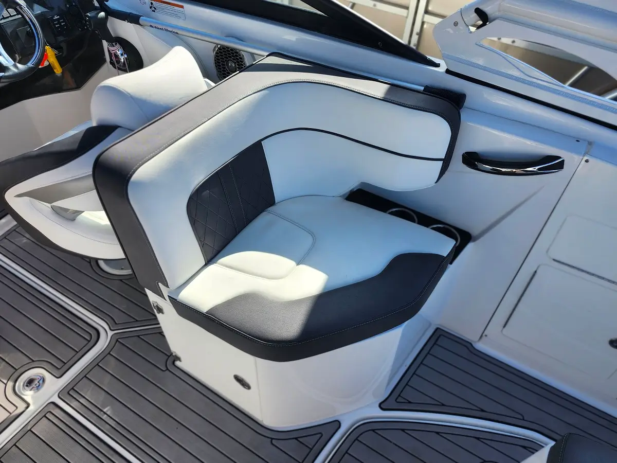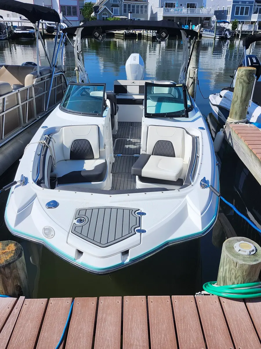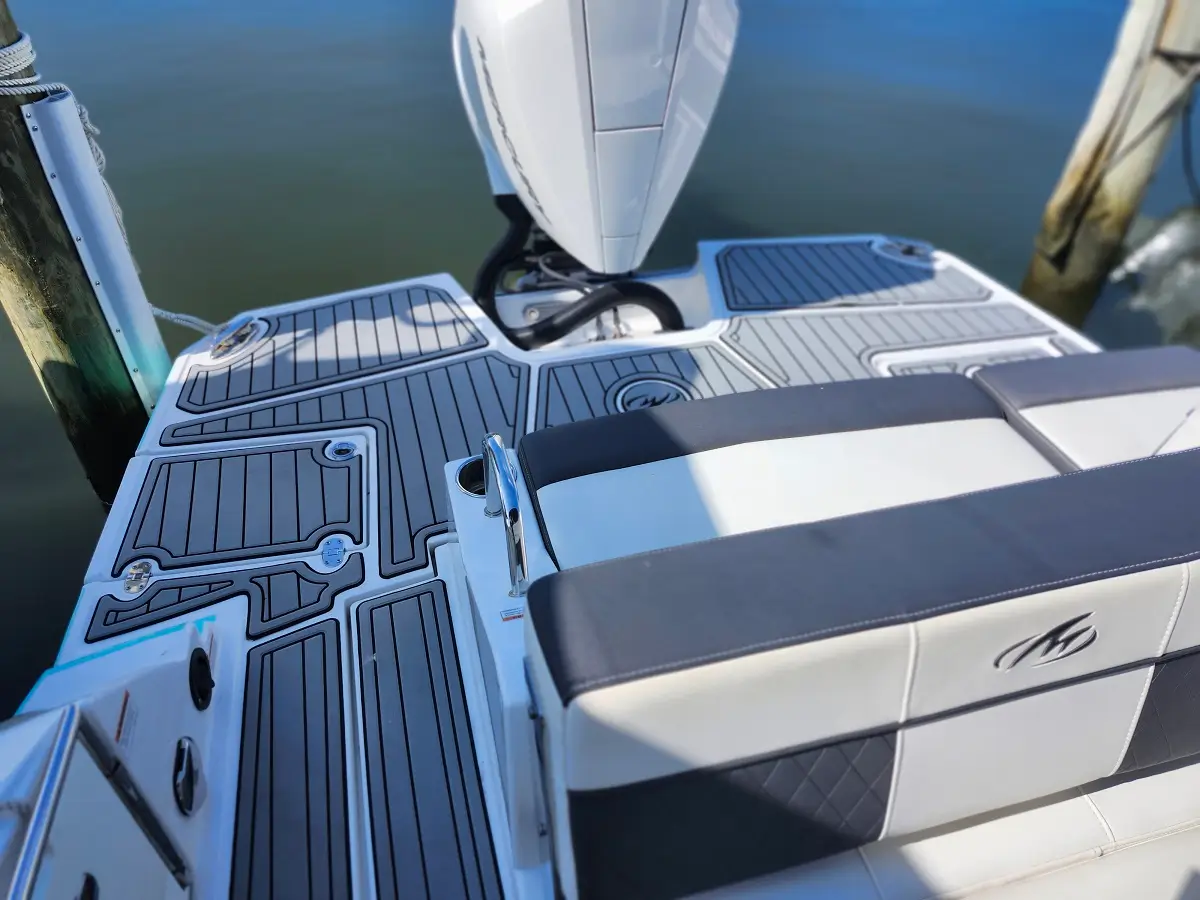 An excellent mid-season find, the 2020 Monterey M65 is a well-maintained, versatile bowrider that is just what the doctor ordered for your summer fun. It has adjustable seating for up to 12 people. The beautiful decking keeps you sure-footed in wet conditions and comfortable in the summer heat. There is a head in the side console, plenty of walking room, a large swim platform for fun in and on the water, a stereo, and touch-screen electronics. It’s propelled by a white Mercury 300-hp outboard. The boat looks like new, and it’s thousands of dollars less. Now offered at an end-of-the-season price.