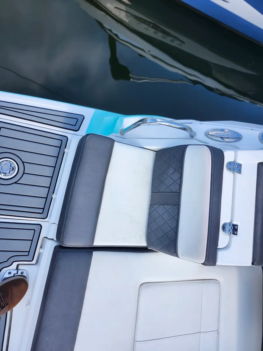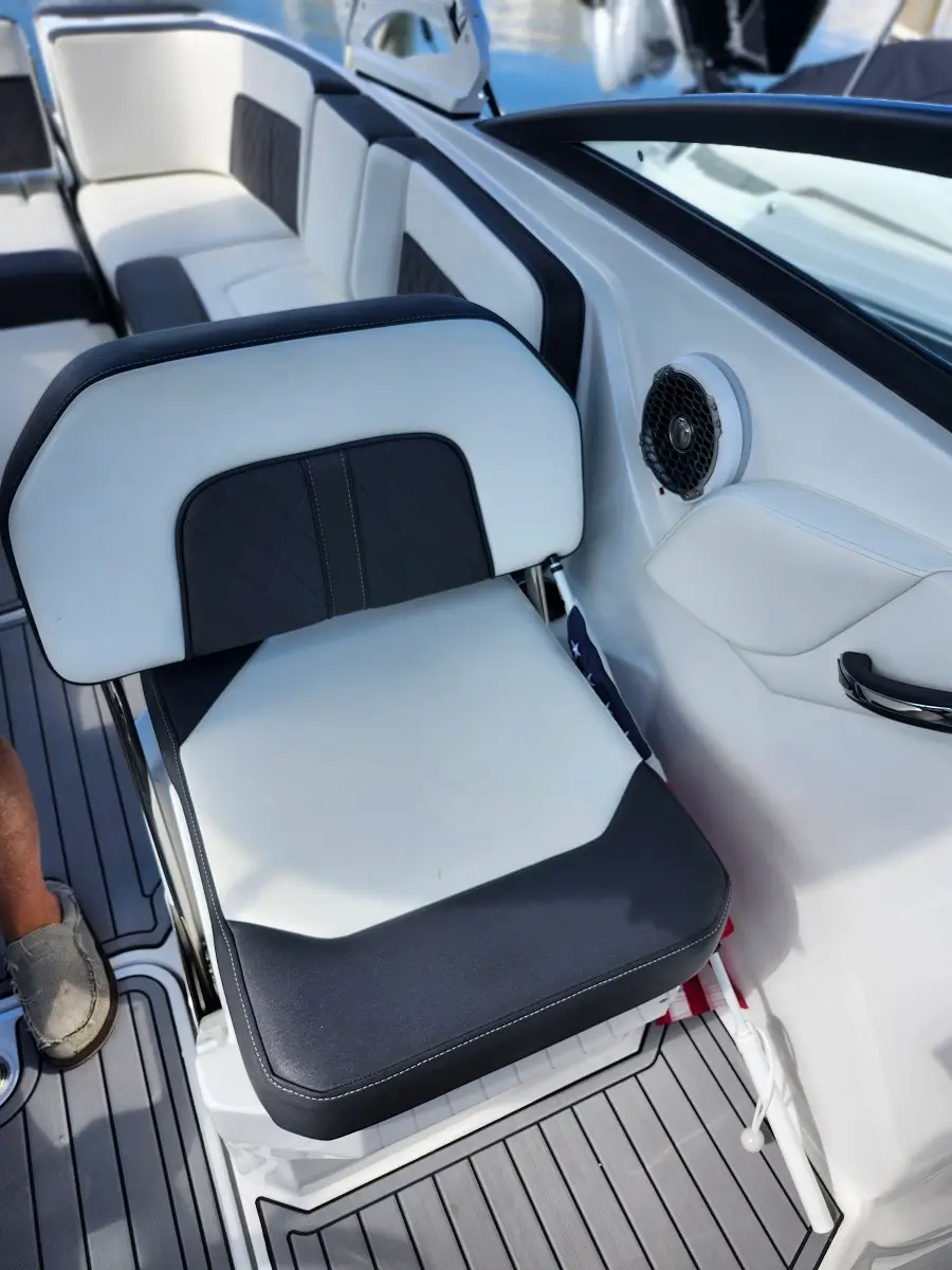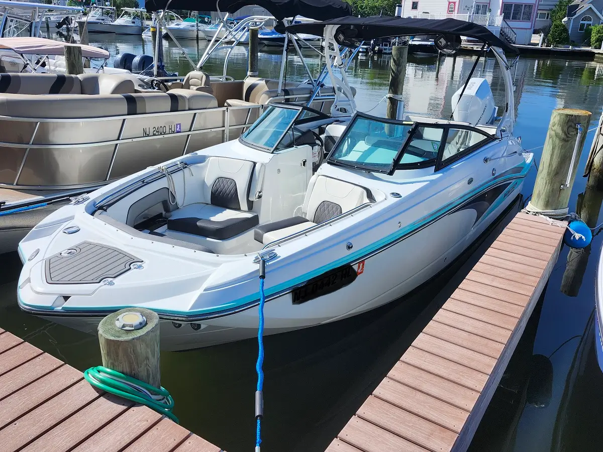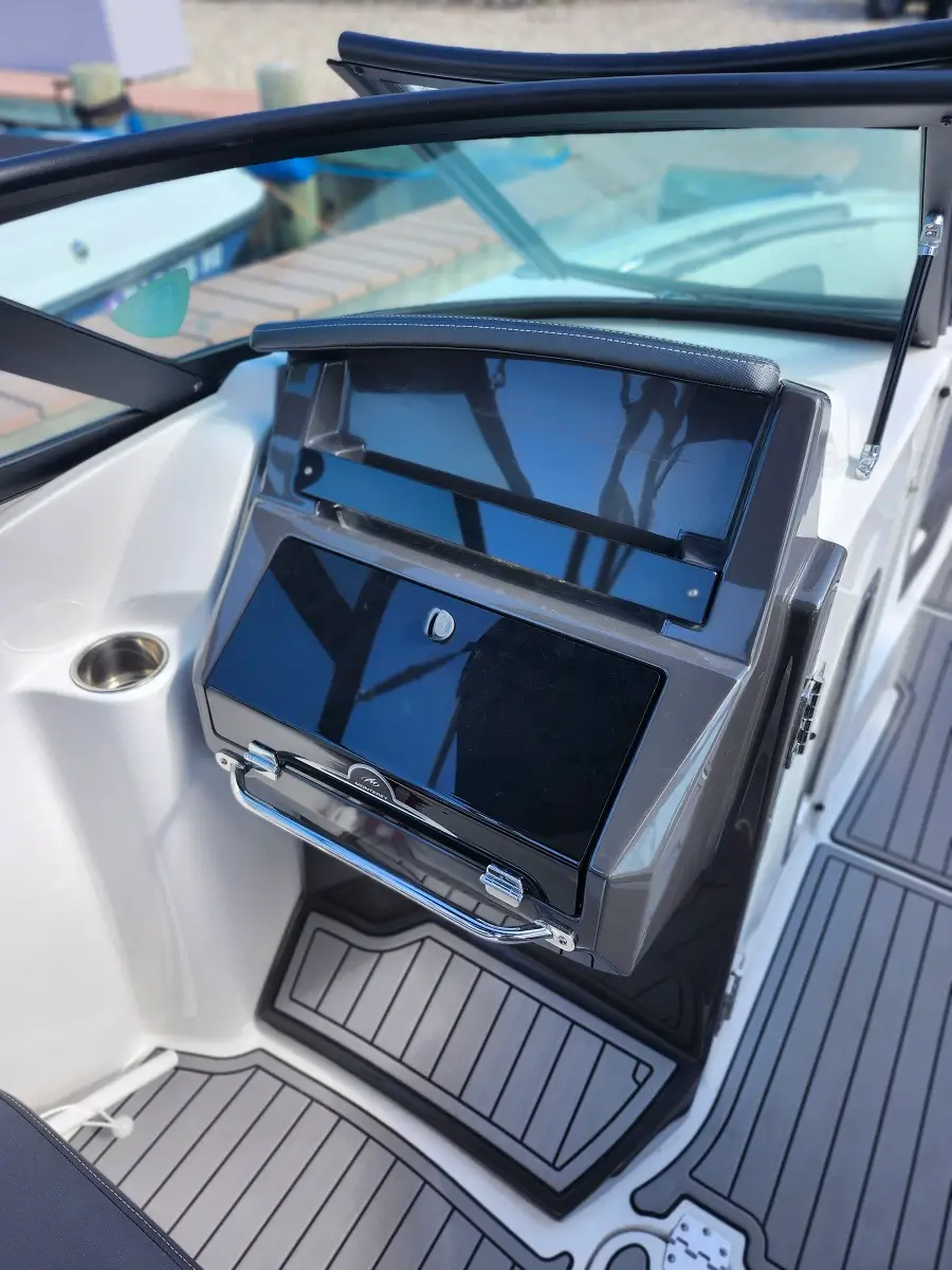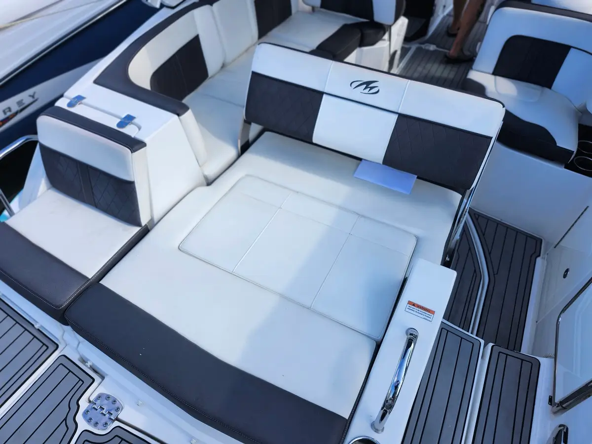 An excellent mid-season find, the 2020 Monterey M65 is a well-maintained, versatile bowrider that is just what the doctor ordered for your summer fun. It has adjustable seating for up to 12 people. The beautiful decking keeps you sure-footed in wet conditions and comfortable in the summer heat. There is a head in the side console, plenty of walking room, a large swim platform for fun in and on the water, a stereo, and touch-screen electronics. It’s propelled by a white Mercury 300-hp outboard. The boat looks like new, and it’s thousands of dollars less. Now offered at an end-of-the-season price.